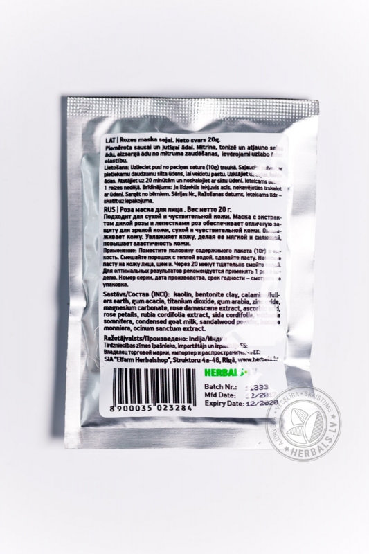 Maska ar savvaļas rožu ziedlapiņu ekstraktu nodrošina lielisku aizsardzību nobriedušai, sausai un jutīgai ādai. Tā atjauno ādu. Tā mitrina ādu, padarot to mīkstu un spīdīgu, uzlabo ādas elastību. Herbals Rose maskas sastāvs ir balstīts uz Ājurvēdas tradīciju, un visas sastāvdaļas tiek rūpīgi sabalansētas tā, lai izlīdzinātu grumbas, atjaunotu ādas zaudēto spēku un nodrošinātu to ar mitrumu.