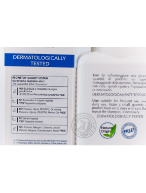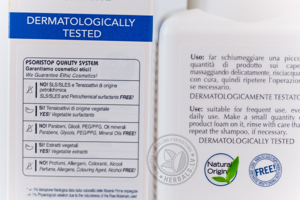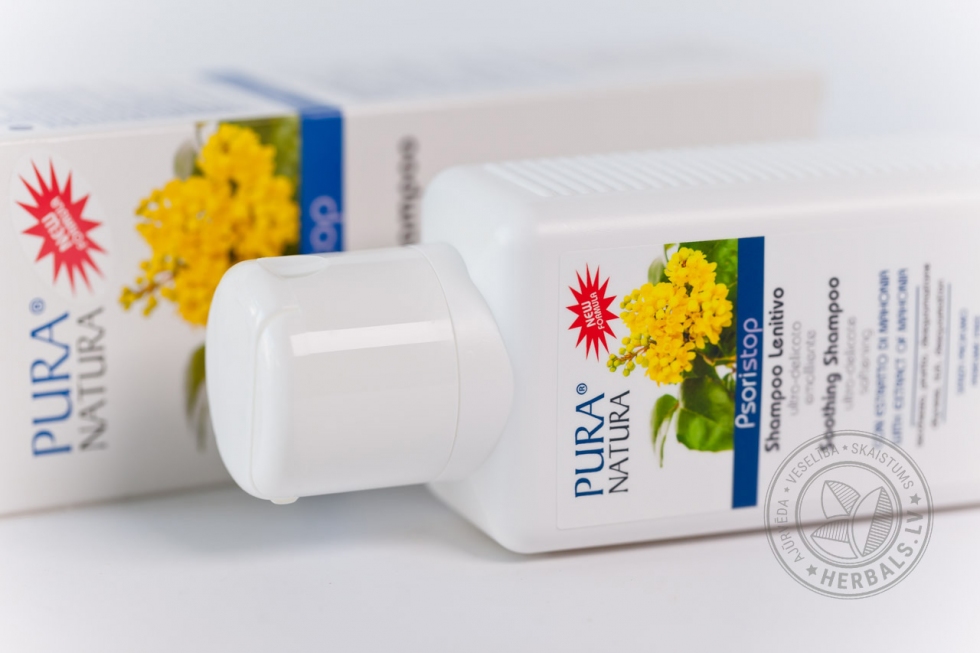 Psoristop šampūns tiek piemērots delikātai matu attīrīšanai. Līdzeklis ir bagātināts ar mahonijas (Mahonia aquifolium) ekstraktu.