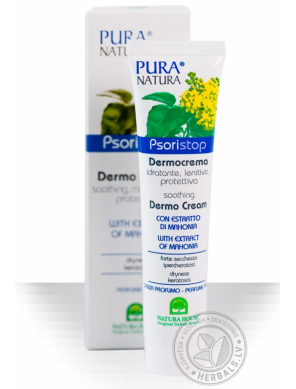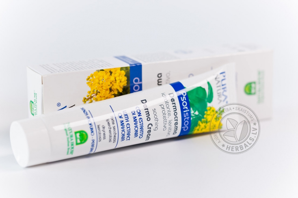 Mahonija satur alkaloīdus, kuri bremzē noteiktu ādas šūnu dalīšanos un augšanu. Šis augs samazina iekaisuma parādības un neļauj inficēt veselās šūnas. Ādas kopšana ar PSORISTOP krēmu ļauj līdz minimumam saīsināt agresīvu terapijas pasākumu pielietošanu.