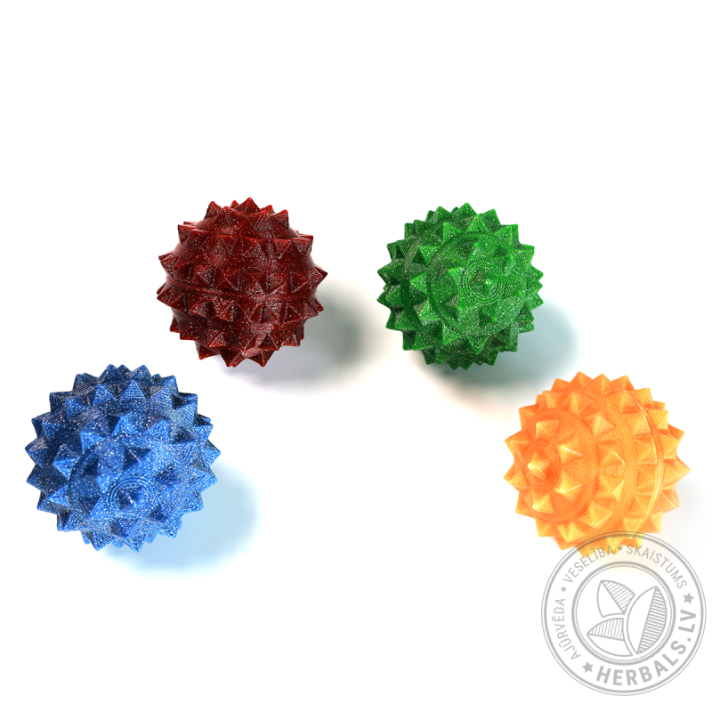 Lietošana: gredzenu uzvelk uz izvēlētā pirksta un intensīvi virpina uz augšu/leju līdz kamēr masējamais pirksts paliek sarkans. Masažieris nedrīkst stāvēt uz pirksta bez kustības. Gredzena masāžas procedūra ir patīkama, tai nav jāpieliek lielas pūles un tā ir nesāpīga. Masāžas bumbiņu izmanto iedarbojoties uz plaukstu un pēdu.