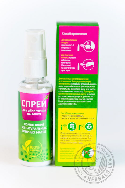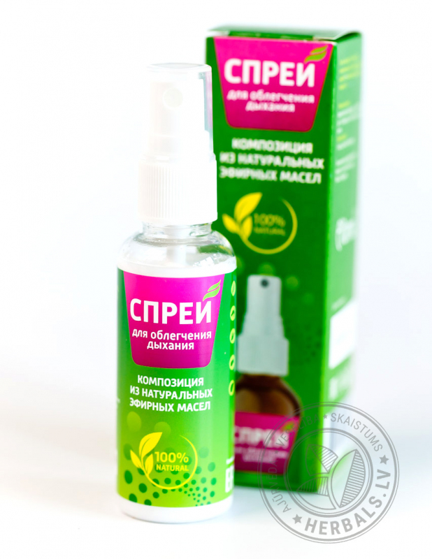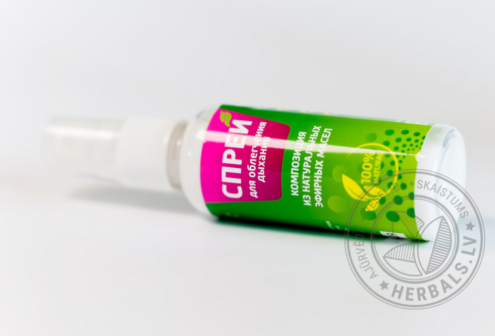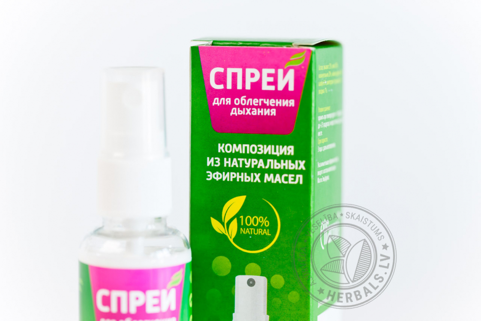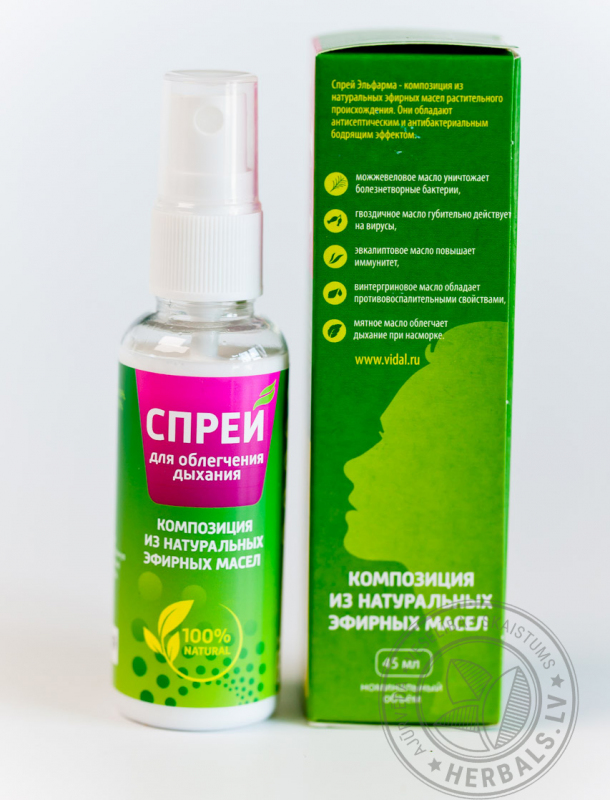 Smidzinātājs elpošanas atvieglošanai ELFARMA ir 7 augu izcelsmes ēterisko eļļu sastāvs.