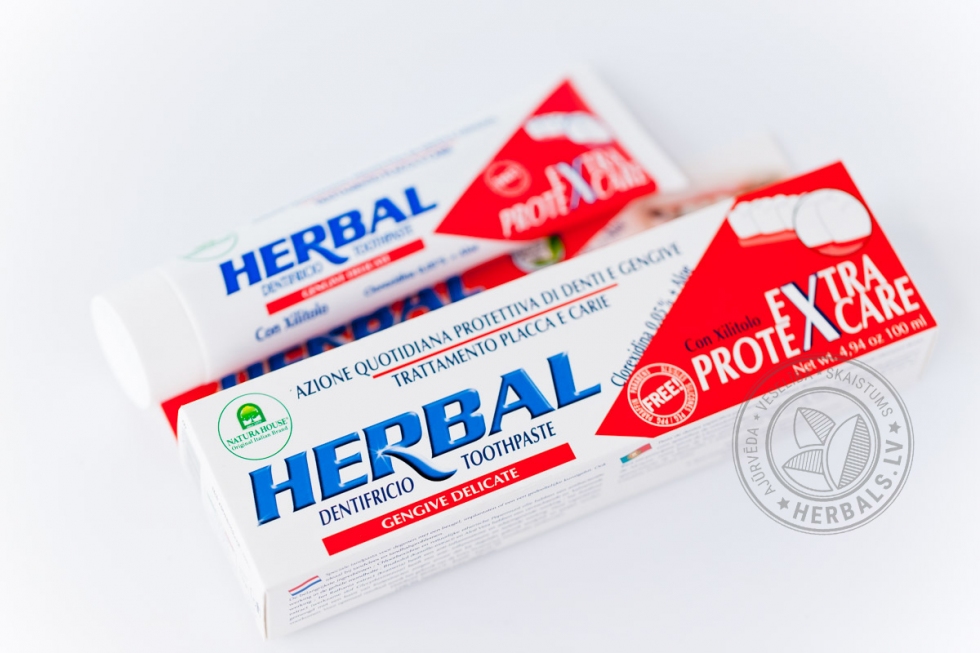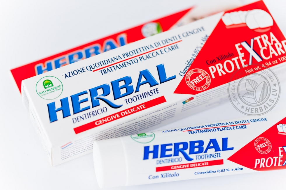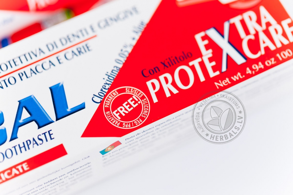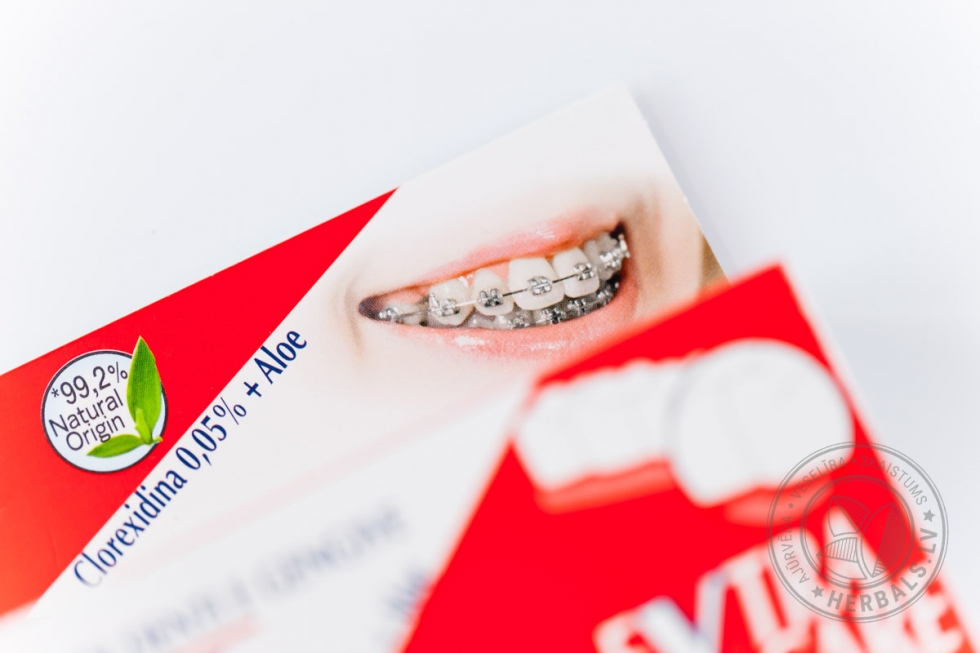 Šī dabīgā zobu pasta delikāti parūpēsies par jūsu zobiem, jo satur tādas vielas kā hlorheksidīns, piparmētru ēteriskā eļļa, bisabolols, alveja, ratani (Peru kramerijas ekstrakts), ksilīts, glicirizīnskābe, augu glicerīns.