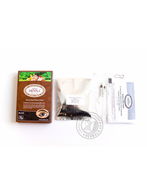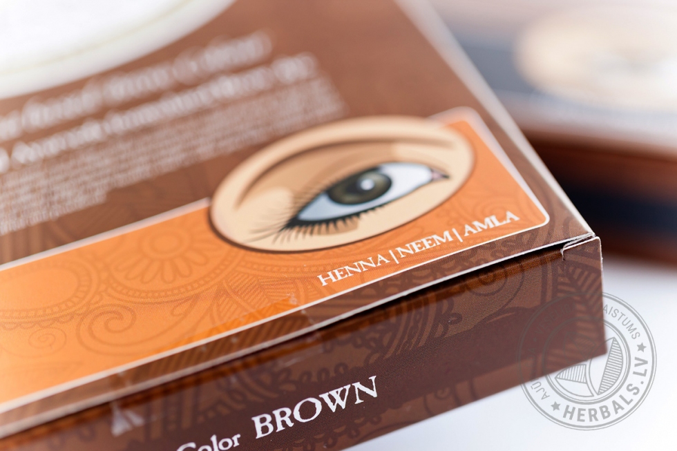 Sastāvs: Lawsonia Inermis (henna), Magnesiocummingtonite (Ziepju akmens), Azadirachta Indica (Neem), Emblica officinalis (Amla), Sodium percarbonate, p-aminophenol, citric acid, magnesium carbonate, sodium sulfite.
