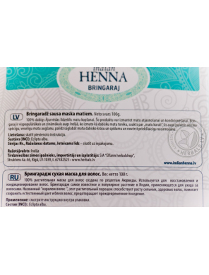 100% dabīgs līdzeklis matu kopšanai. Šo produktu var izmantot matu atjaunošanai un kondicionēšanai, matu izkrišanas novēršanai. Bringaraj ir vispopulārākais un zināmākais augs Indijā, ko izmato kā dabisku matu toniku, saukts par „matu karali”,šis augu pulveris veicina spēcīgu, veselīgu matu augšanu, palīdz saglabāt matu dabisko krāsu un spīdumu un novērst priekšlaicīgu nosirmošanu.