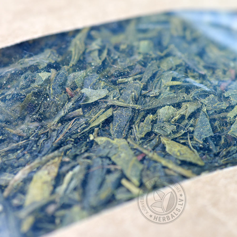 Šis tējas veids ir radies Japānā, un mūsdienās tā joprojām ir apmēram 80% japāņu iecienītākā tēja. Tēja tūlīt pēc novākšanas tiek tvaicēta, kas pastiprina tās aromātu un saglabā svaigumu, garšas niances un vairumu vērtīgu vielu sastāvā. Tējai piemīt smalks ziedu un zāles aromāts, tā patīkami atsvaidzina un tonizē. Dzer visas dienas garumā. Pateicoties vieglajai konsistencei un neuzbāzīgajām garšas niansēm, labi sader ar asiem un pikantiem ēdieniem.
