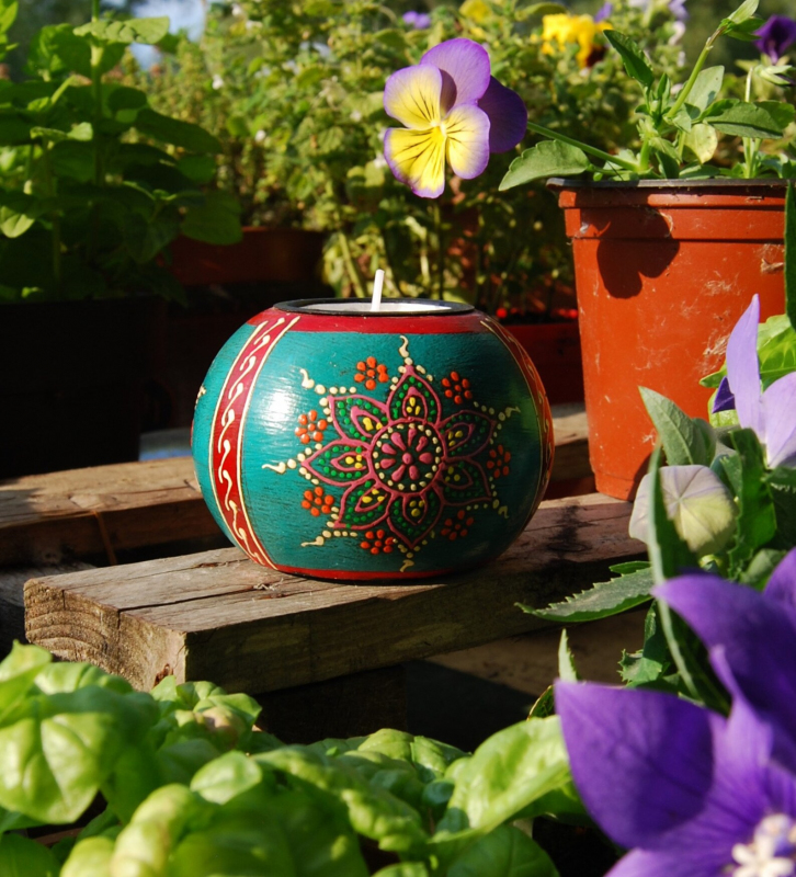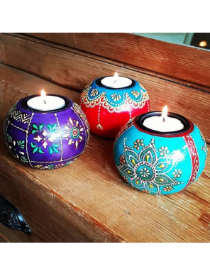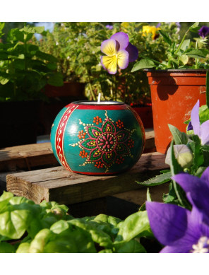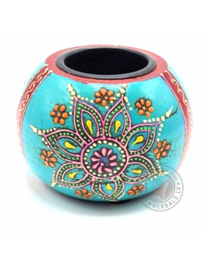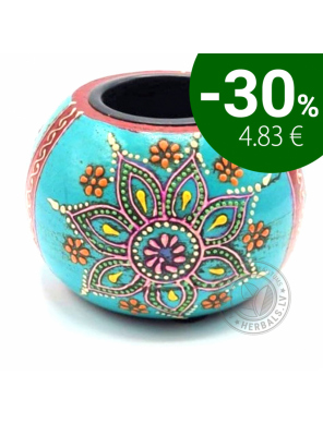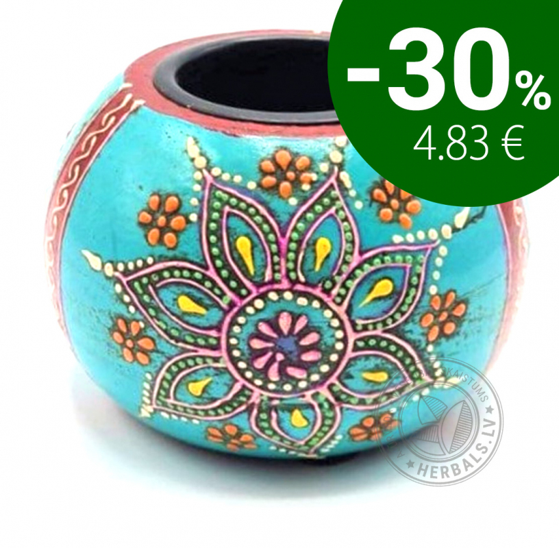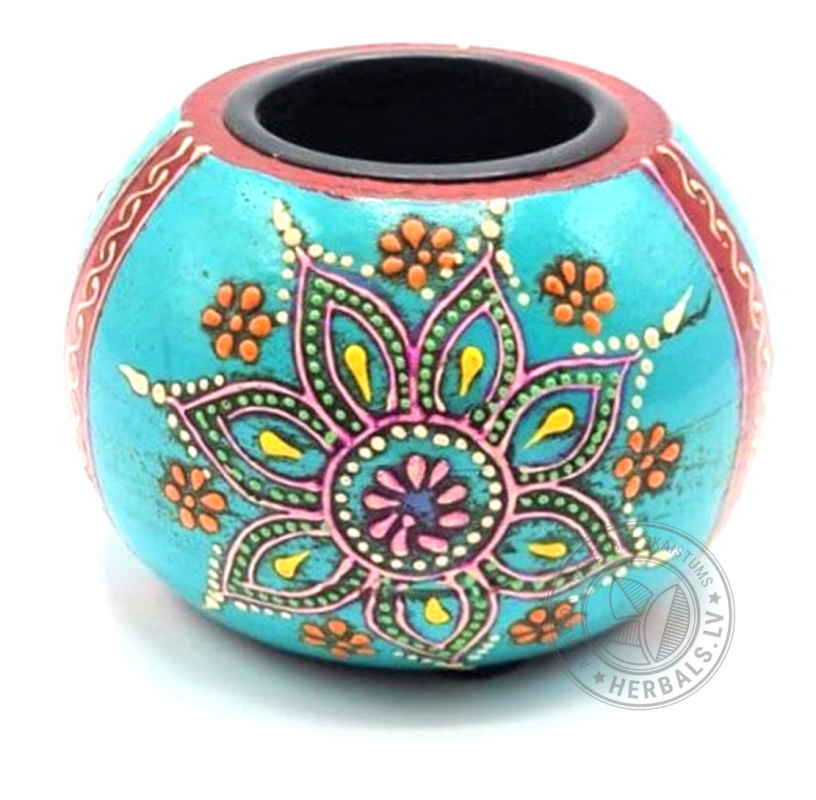 Krāšņs, ar rokām apgleznots apaļš svečturis, ar rokām izgatavots no mango koka, videi draudzīga, ātri augoša koka. Ar rokām apgleznotas skaistās piesātinātās krāsās.