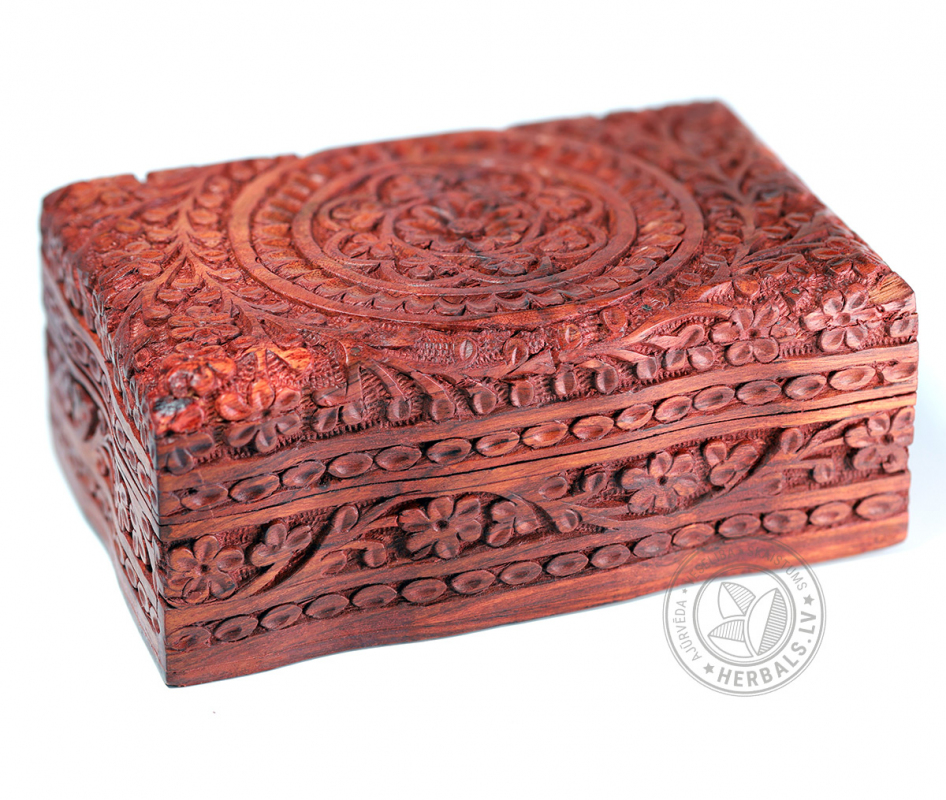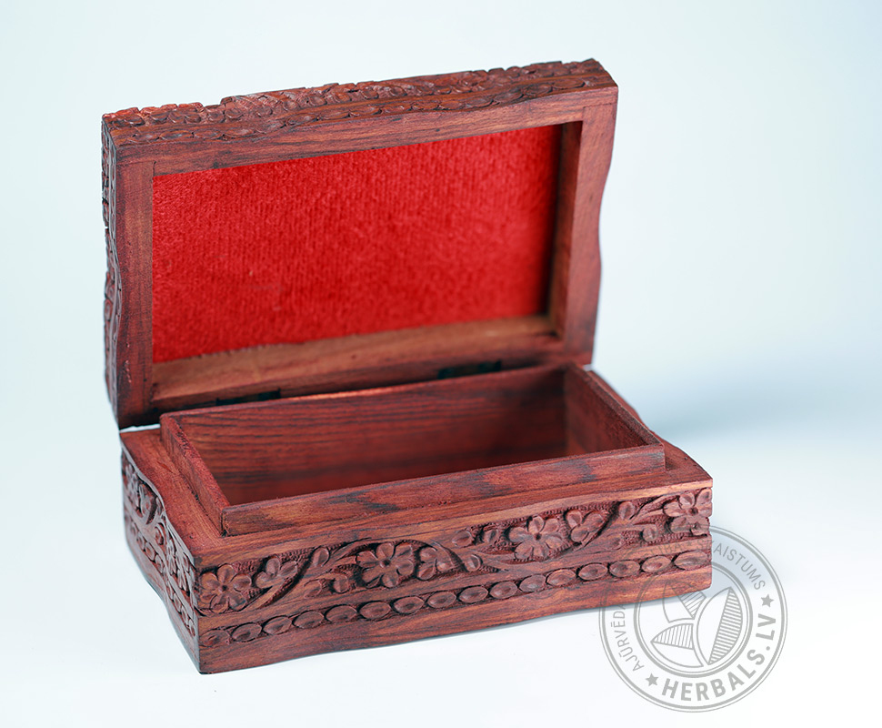Ar rokām darināta Rožkoka kastīte ar Kašmiras kokgriezumiem