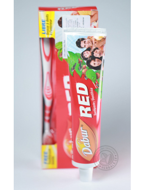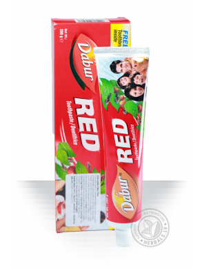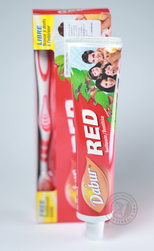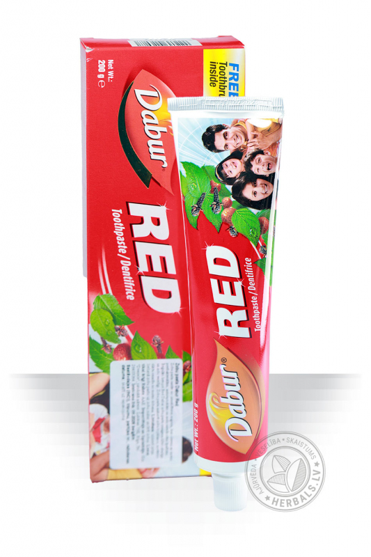 Protams, tai ir arī zobu pastas standarta īpašības: tā efektīvi attīra aplikumu, atsvaidzina elpu un baro zobus ar lietderīgām vielām. Pat pēc pastas lietošanas Jūs joprojām ilgu laiku jutīsit tās atsvaidzinošo efektu, pateicoties piparmētru un sarkano piparu klātbūtnei. Šīs dabiskās sastāvdaļas lieliski darbojas uz zobiem un smaganām, ilgstoši aizsargājot tos no aplikumu veidošanās, kas izraisa sliktu elpu. Tāpēc nav pārsteidzoši, ka Red Dabur zobu pasta ir kļuvusi tik izplatīta Indijā un pakāpeniski iegūst fanus citās valstīs.