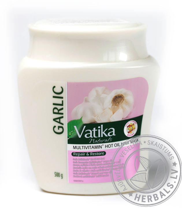Dabur Vatika Naturals Garlic dabīgās matu maskas ar ķiploku ekstraktu pamatā ir Spānijas ķiploku ekstrakts. Maska ļoti efektīvi aizsargā matu šķipsnas no lūšanas un izkrišanas, kā arī atdzīvina un piešķir matiem papildus spēku un spīdumu.