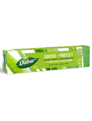 Dabur Aloe Vera organiskā alvejas zobu pasta ir unikāls dabas labāko un spēcīgāko sastāvdaļu maisījums, piemēram, Aloe Vera, Al Arak un Tea Tree. Alveja ir plaši pazīstama kā dabisks nomierinošs līdzeklis smaganu problēmām. Dabur Aloe Vera zobu pasta ar organisko alveju palīdz nomierināt iekaisušās smaganas, aizsargāt zobus no dobumiem un saglabāt zobus un smaganas veselus un stiprus.