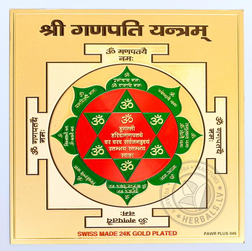 Ganeša Jantra aizsargā pret nelaimes gadījumiem, novērš šķēršļus, noved pie vēlmju izpildi, piesaista veiksmi, novērš Vastu defektus mājā (stiprina Ziemeļus un Austrumus)