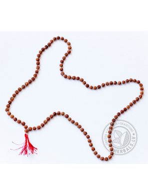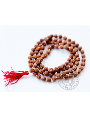 Rudrakšas mala - izcilas kvalitātes, sasieta tradicionālā stilā ar mezgliņiem starp bumbiņām.