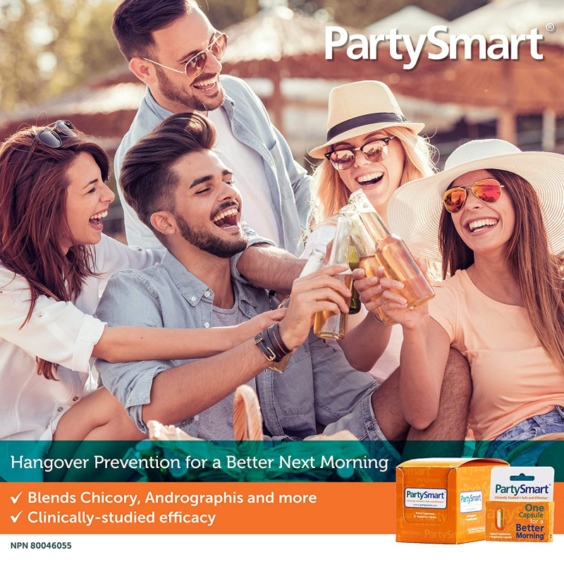 Relieves after-effects of alcohol: When alcohol is consumed, it is mainly converted into acetaldehyde (an intermediate metabolite of alcohol metabolism) by the liver. Acetaldehyde at higher concentrations leads to unpleasant after-effects such as fatigue, headache, nausea, vomiting, body ache, burning sensation in the stomach and drowsiness. PartySmart prevents these symptoms by rapidly eliminating acetaldehyde from blood. The drug eliminates acetaldehyde by increasing ADH (alcohol dehydrogenase) and ALDH (aldehyde dehydrogenase) activity, without any side effects.