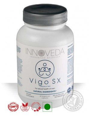 Innoveda Vigo SX is developed with 5000 years old recipe and in combination with modern scientific methods to expose the maximum benefits of the herbs. Enriched with Saffron along with time-tested and scientifically validated herbo-mineral active ingredients, Innoveda Vigo-Sx Capsule is a completely safe and effective invigorating, nourishing, rejuvenating and stimulating tonic for men and women that considerably stimulates desire and boosts vitality.