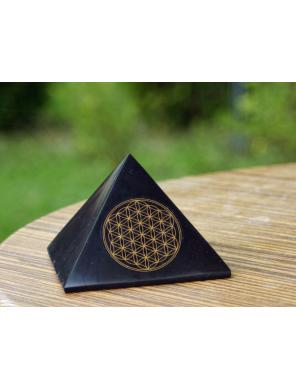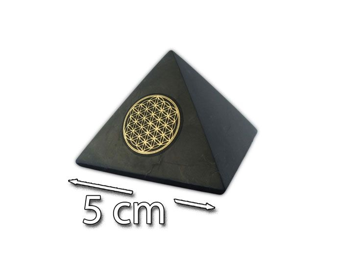Shungite Pyramid with Flower of Life Symbol 5cm
