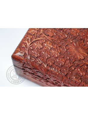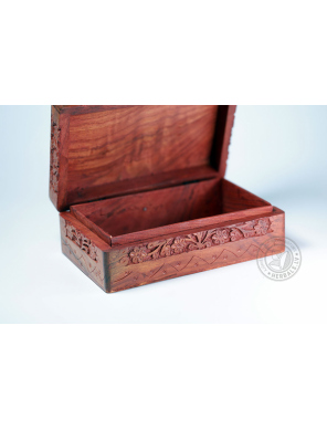 An eye-catching carved rosewood box with exquisite floral designs is an irresistible handcrafted accessory. Ideal for storing your favorite jewelry and valuables, this jewelry box is a stunning decorative piece for your home.