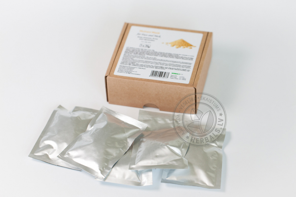- Маска. Поместите половину содержимого пакета (10г) в емкость. Смешайте порошок с теплой водой или цветочной водой, сделайте пасту. Нанесите пасту на кожу лица, шеи и. Через 20 минут тщательно смойте водой. Для оптимальных результатов рекомендуется применять 1 раз в неделю.