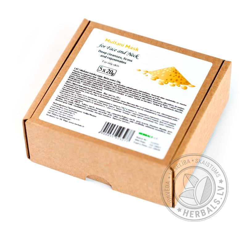 Herbals Multani обладает великолепными абсорбирующими свойствами и эффектом лифтинга. Проникая глубоко в кожу, вбирает в себя грязь и излишки жира и сужает поры, подтягивая и укрепляя контур лица. Питает кожу, передавая ей свои целебные свойства, витамины и минералы, выводит токсины.
