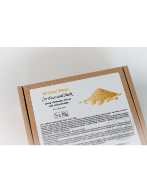 Маска на основе лечебной глины Мултани Митти используется для обезжиривания и выравнивания кожи, очистки пор, отбеливания и удаления омертвевших клеток эпидермиса, нормализации работы сальных желез.