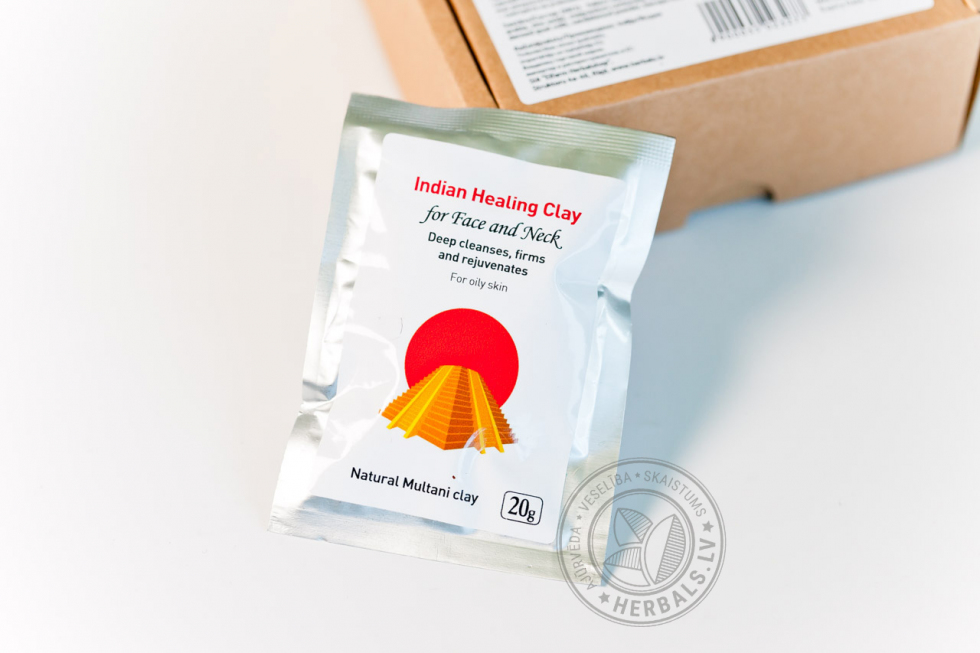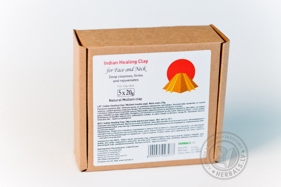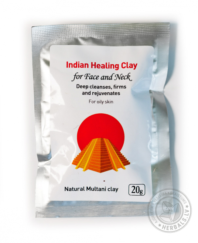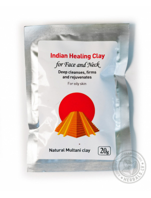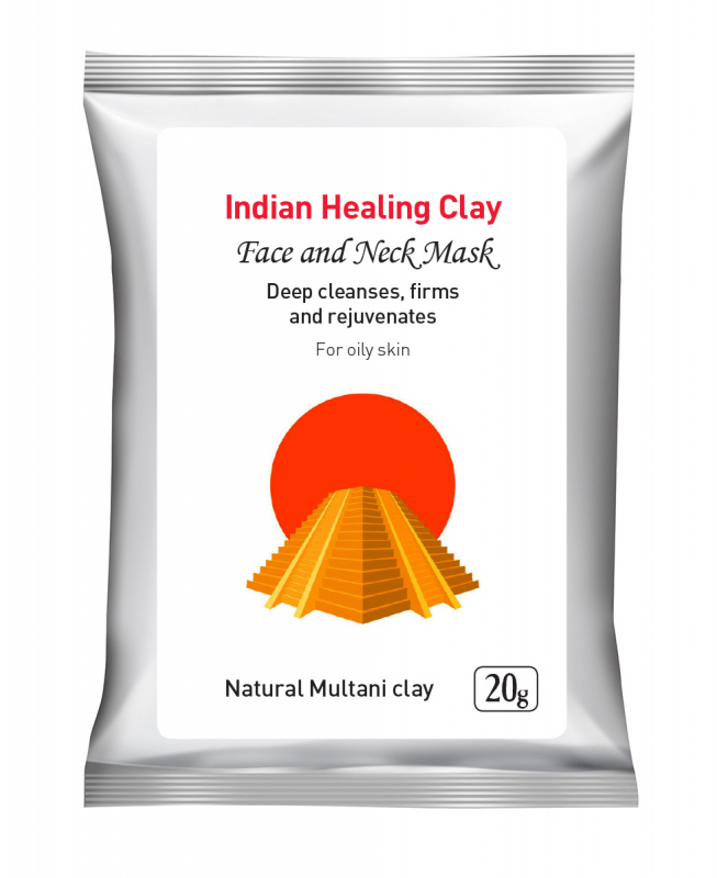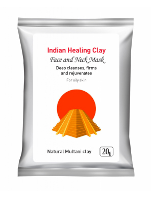 INDIAN HEALING CLAY Face Mask – Бентонитовая глина, Мултани митти, Смола акации, Карбонат Магния, Витамин С, Манжишта, Бала, Коровье молоко, Бакопа, Лакрица,