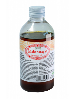 Маханараян Тайлам – многокомпонентное масло (содержит около 50 компонентов), одно из самых сильнодействующих в Аюрведе, которое используется в Индии на протяжении многих веков. Применяется при неврологических заболеваниях, хорошо расслабляет, восстанавливает силы, возвращает здоровый и крепкий сон, уравновешивает центральную нервную систему, поддерживает активность (особенно в преклонном возрасте). Масло можно использовать как для местного, так и общего массажа тела, исключая область головы. Считается, что средство способствует укреплению защитной энергетической оболочки человека (ауры).