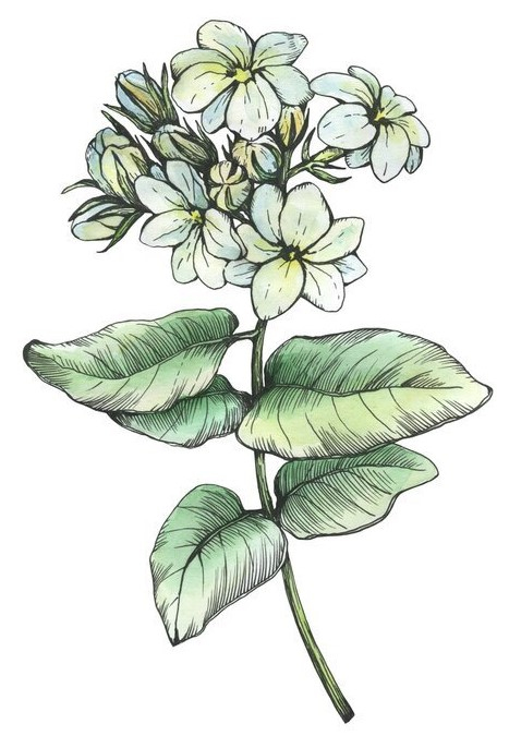 У цветков жасмина сильное охлаждающее и успокаивающее действие. Они охлаждают кровь, способствуя остановке кровотечения, и одновременно оказывают антибактериальное, противовирусное и противоопухолевое действие.