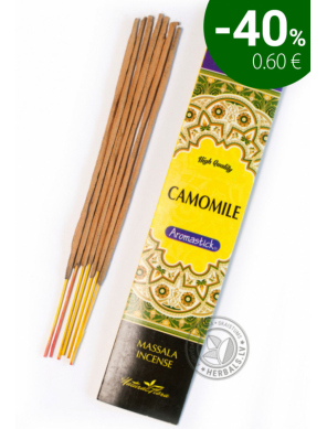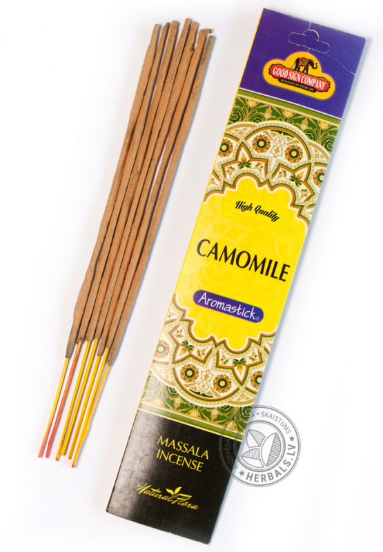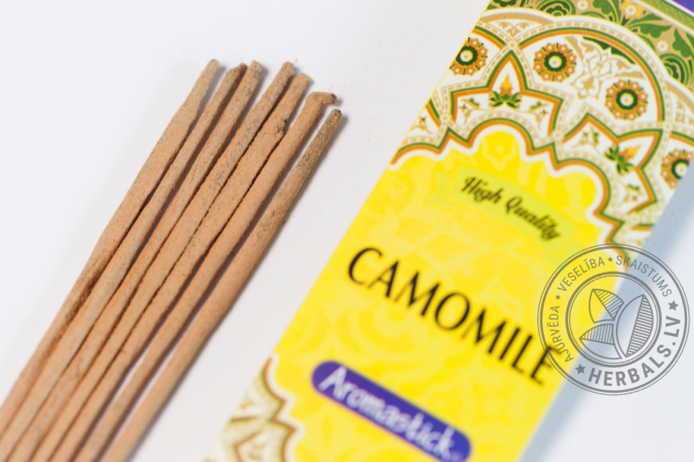 приятный мягкий цветочный аромат с медовыми нотами. Ароматические палочки "Camomile" обладают успокаивающим, седативным свойством, применяются при стрессах, депрессии, умственном и физическом переутомлении.