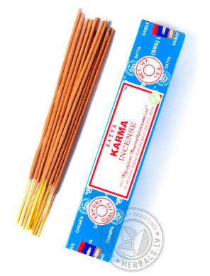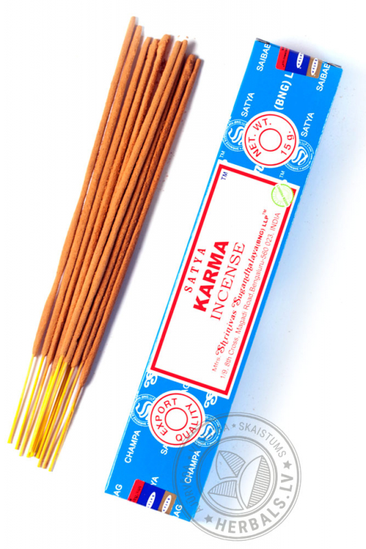 Благовоние Karma (Карма) от одного из самых известных индийских производителей «Satya» имеет удивительный аромат, напоминающий запах специй, но вместе с тем легкий и нежный, с цветочными нотками. Аромат очень хорош для медитации, занятий йогой и другими духовными практиками. Вдыхание аромата уплотняет и очищает ауру, создаёт неповторимые ощущения при занятиях йогой. Дает вдохновение, позитивный настрой, помогает по-новому взглянуть на старые, нерешенные проблемы.