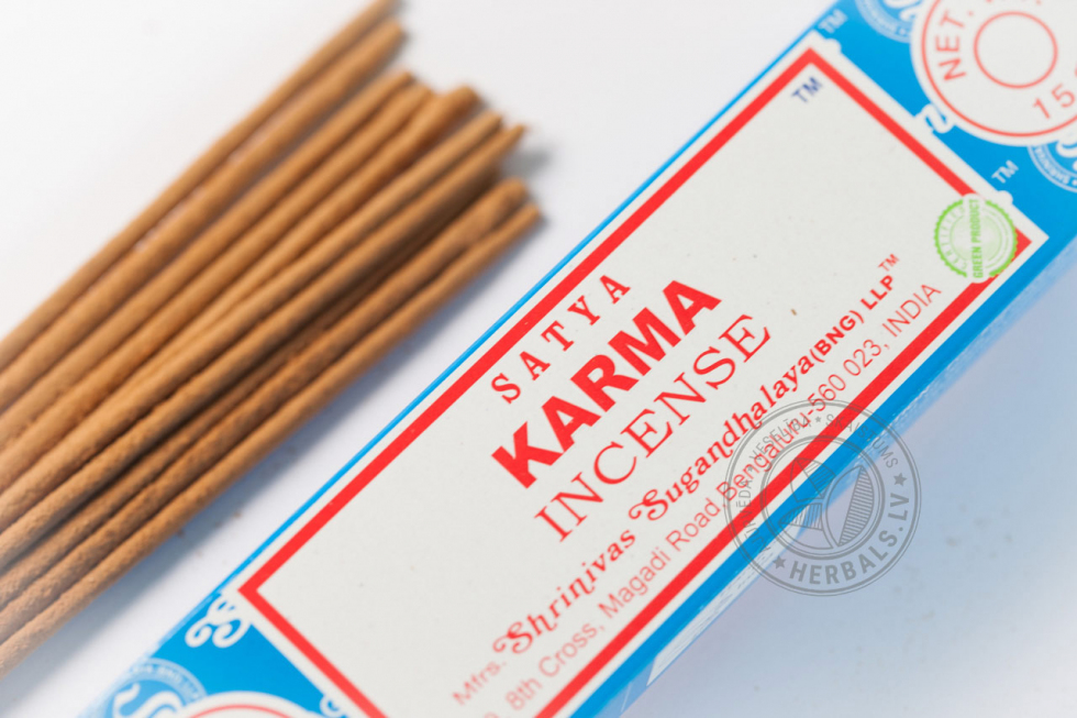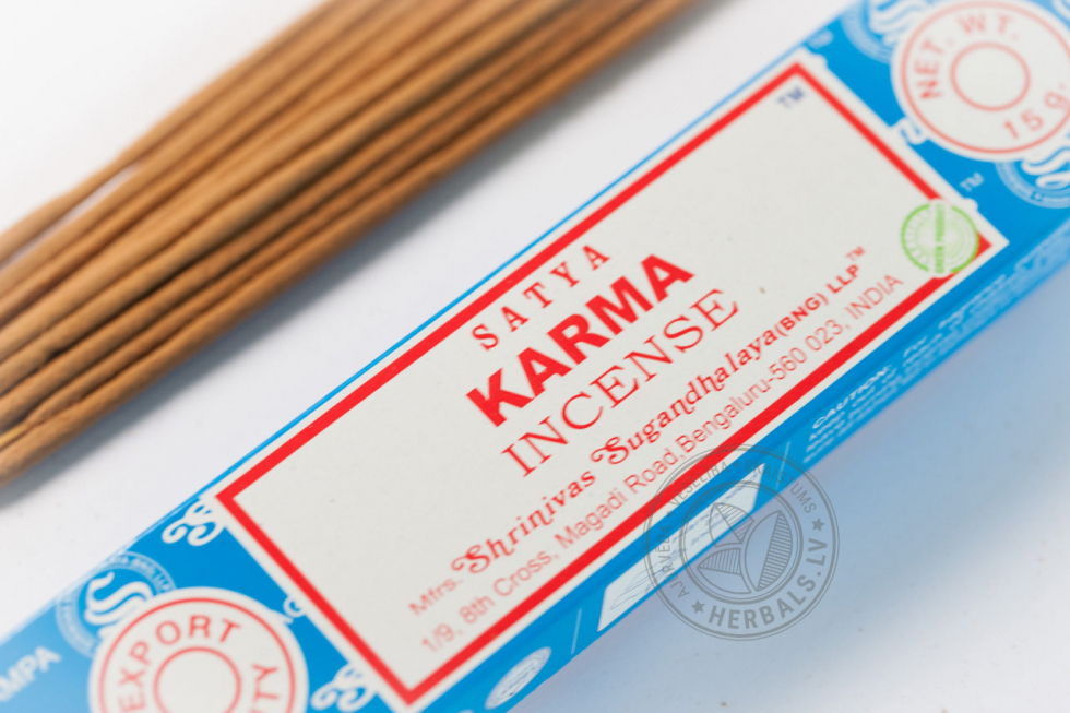 Благовония способствуют расслаблению, благоприятны для снятия усталости и стресса. Satya Karma помогает преодолеть чувство страха и облегчает засыпание. Благовония Karma нормализуют работу трёх дош, устраняют тревожность, выводят из депрессии, помогают сконцентрироваться в процессе медитации, восстановить энергетику, раскрыть таланты и способности. В меру сладкий экзотический аромат зажжённых благовоний Karma Satya хорошо подойдёт для просторных помещений. Запах заряжает позитивом, настраивает на духовные практики, даёт ориентир на решения множества вопросов.