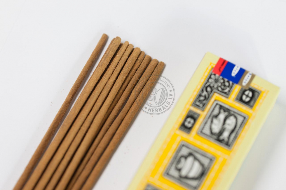 Как использовать: Чтобы насладиться приятным запахом, подожгите кончик ароматной палочки, дайте ей разгореться, а затем задуйте пламя. Поместите палочку в специальную подставку, где она будет тлеть, источая аромат. Одна палочка весит около 1 грамма и горит в течение 45 минут.