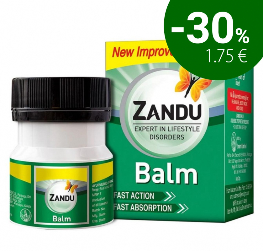Хорошо известный в Индии бальзам Zandu зарекомендовал себя как прекрасное болеутоляющие средство для наружного применения. Бальзам Zandu состоит из натуральных высокоэффективных компонентов, которые помогают при головных болях и болях от растяжений связок, напряжения, артрита, подагры, болях в пояснице, ушибов и спортивных травм, при простуде, укусах насекомых.
