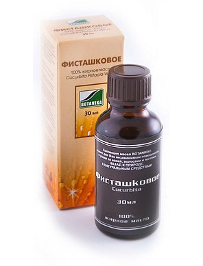 •Маски и аппликации: на участки проблемной кожи накладывать салфетки, пропитанные фисташковым маслом или смесью с маслами миндальным, авокадо, жожоба, зародышей пшеницы. 1-2 раза в день на 15-30 мин.