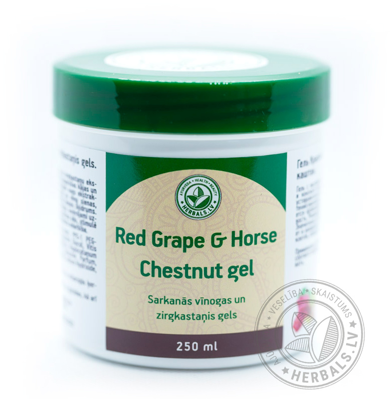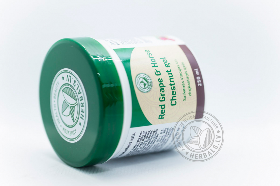 Гель с экстрактом листьев красного винограда и конского каштана. Освежает и расслабляет уставшие ноги и вены. Благодаря экстрактам растений укрепляются стенки сосудов и вен, улучшается кровообращение, выводится лишняя жидкость. Рекомендуется при усталых ногах и венах. Значительно повышает упругость кожи, смягчает и увлажняет кожу, стимулирует регенерацию клеток, обладает антиоксидантным действием.