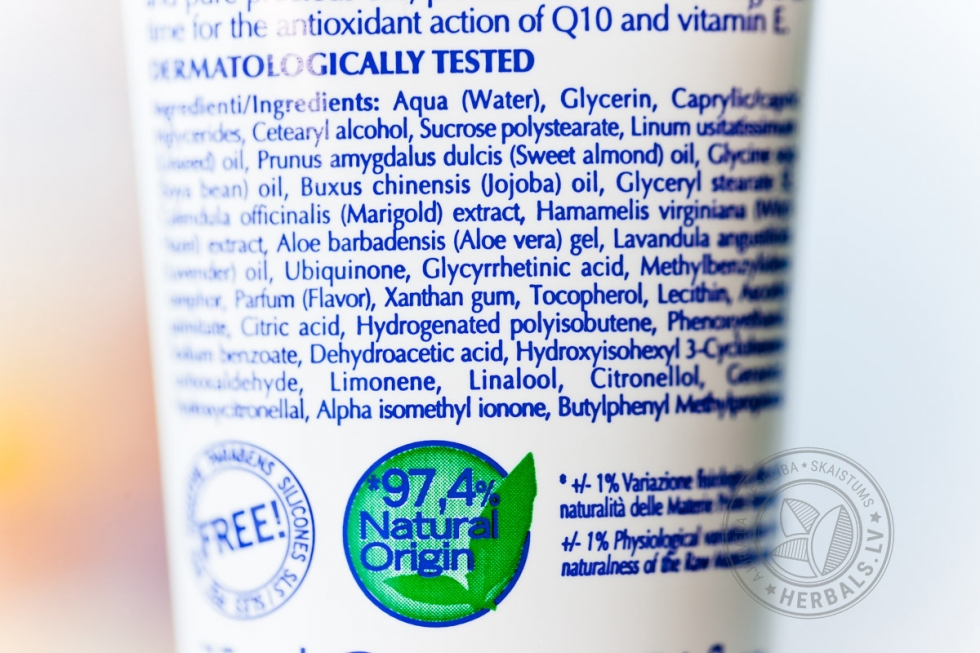 Входящие в состав растительные экстракты и эфирные масла делают кожу рук мягкой и гладкой, а коэнзим Q10 предохраняет от отметок времени.