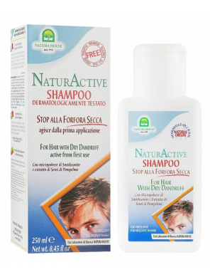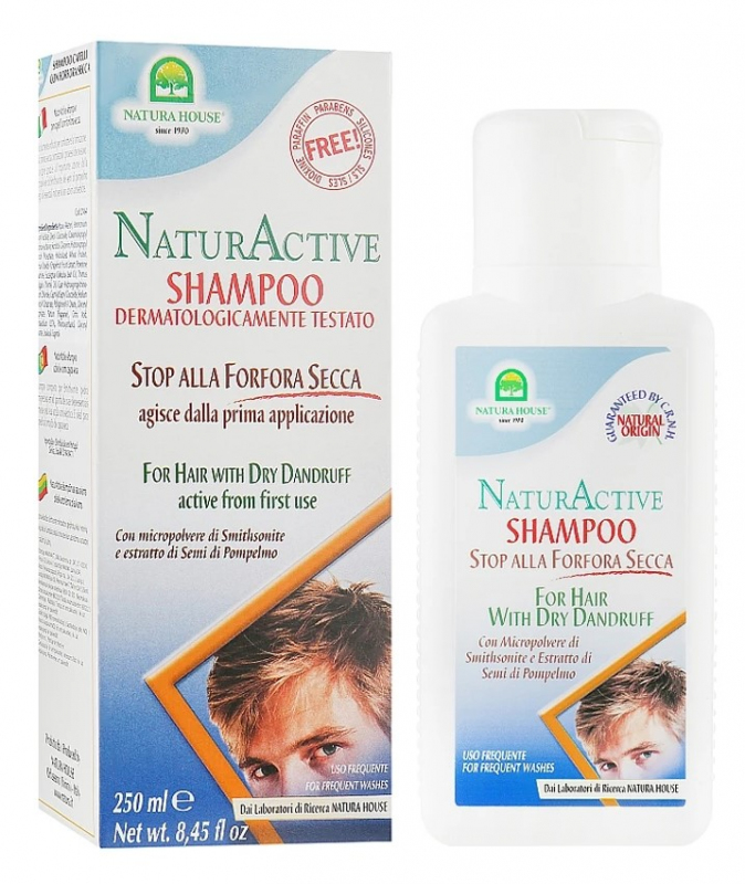 Шампунь NaturActive для волос от перхоти производится итальянским косметическим брендом Natura House. Продукт рассчитан на частое использование и дает заметный эффект уже с первого применения. Шампунь устраняет причину возникновения перхоти благодаря выраженному антисептическому действию порошка смитсонита (карбоната цинка), усиленному натуральными экстрактами и эфирными маслами.