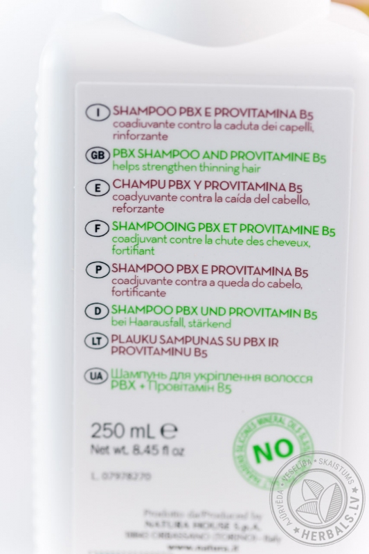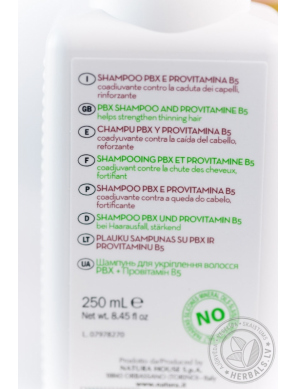 «P» - Pappa Reale маточное молочко, известное высоким содержанием витаминов группы В, оно активизирует процессы восстановления поврежденных волос.«В» - Bosso - самшит, экстракт которого предотвратит чрезмерное выпадение волос и стимулирует их рост, он оздоровит кожу головы, предупреждая появление себореи. «Х» - Ximenia - ксимения, кислота которая смягчит волосы, сделает их послушными и сияющими.Шампунь имеет кислый PH, идеально подходит для ослабленных, поврежденных и окрашенных волос. Регулярно используя шампунь, вы сможете вернуть здоровье поврежденным волосам.