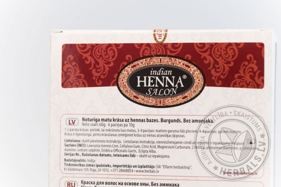 Состав (INCI): ): Lawsonia Inermis Linn, CelluloseGum, CitricAcid, MagnesiumCarbonate, 2-Nitro p-phenylene diammine, p-phenylene diamine, sodium sulphite, Emblica Officinalis Gartn,Eclipta Alba.