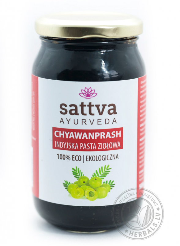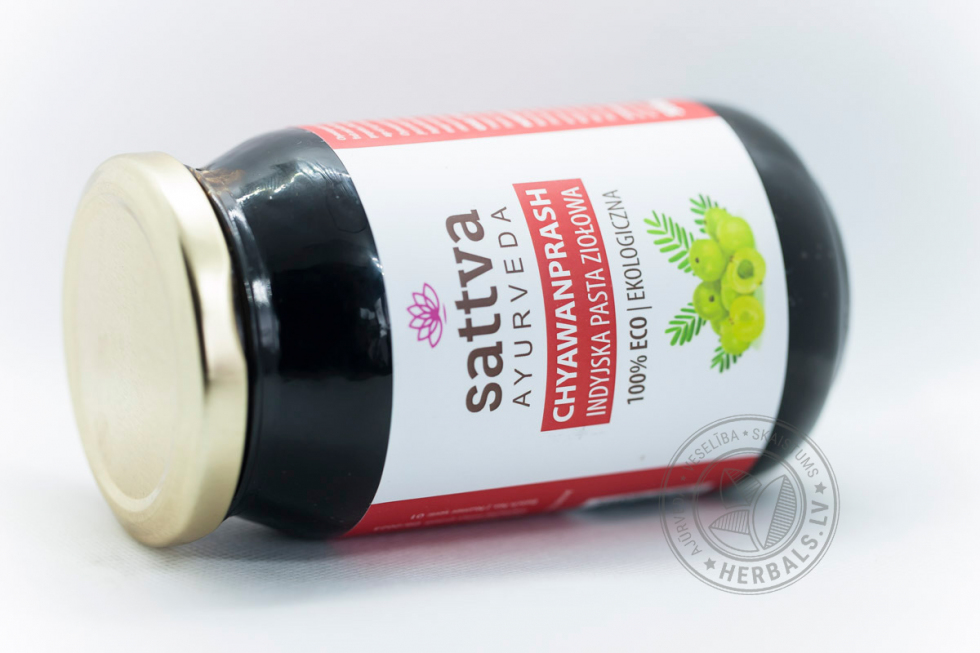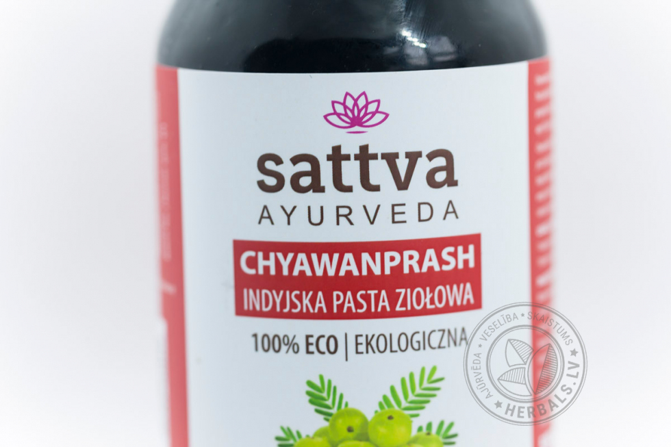 Чаванпраш Sattva является уникальным продуктом, содержащим только натуральные компоненты и изготовленным на основе свежих плодов амлы (индийского крыжовника), что намного усиливает его антиоксидантые свойства и обеспечивает мягкость вкуса.