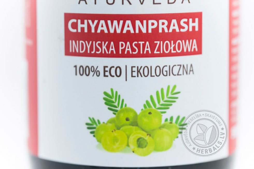 Основным компонентом чаванпраша является Амла (индийский крыжовник) - самый богатый источник витамина С в природе. Сок Амлы содержит витамина С в 20 раз больше, чем апельсиновый сок.