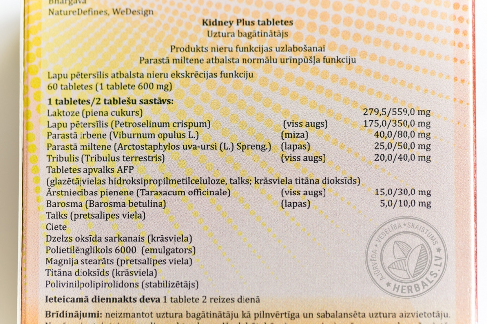 Kidney Plus представляет собой сочетание экстрактов петрушки, калины обыкновенной, якорцев стелющихся, толокнянки обыкновенной, одуванчика и бучу