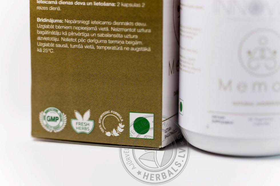 В 2-ух капсулах/ в 4-ёх капсулах: Порошок растения Готу Колы (Centella asiatica) 300мг/ 600мг; порошок листьев Бакопы (Bacopa monnieri) 300мг/ 600мг; Оболочка капсулы: растительная целлюлоза (Е460).