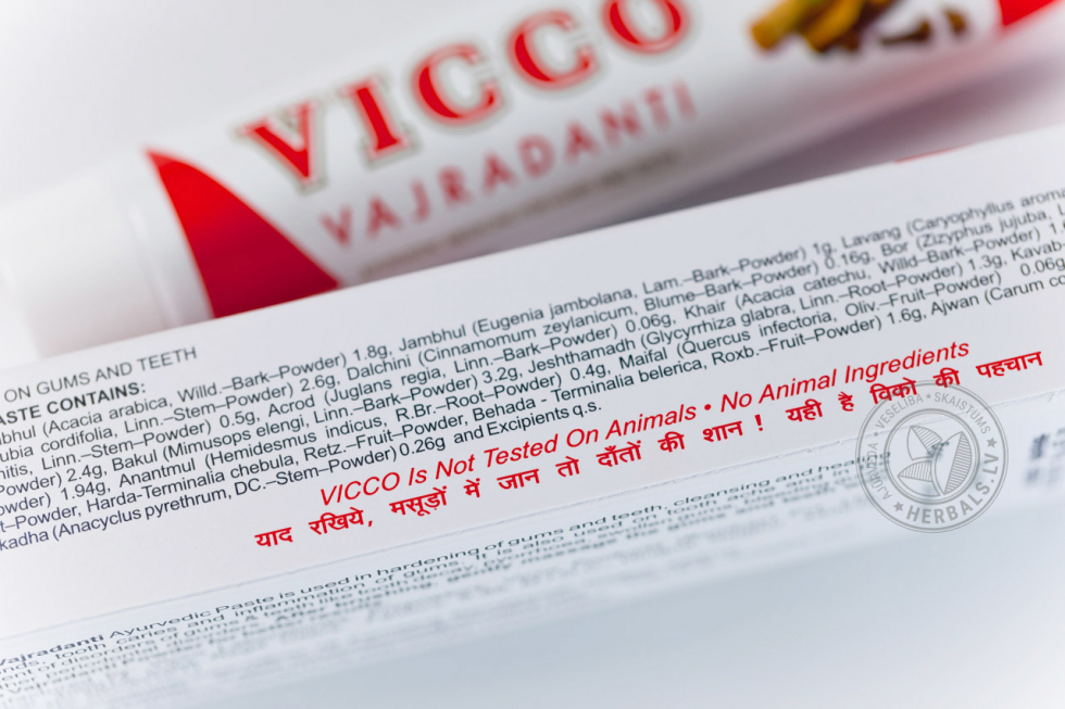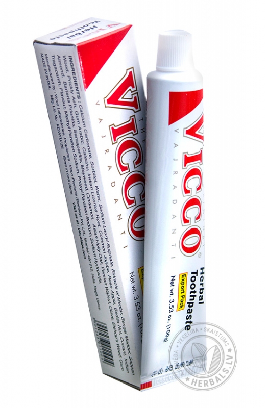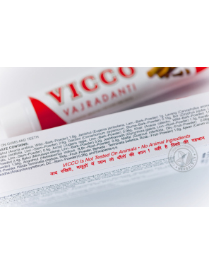 Особенностью зубной пасты VICCO является полное отсутствие вредных химических соединений (стабилизаторов, красителей и пр.), а также продуктов животного происхождения. Приятный вкус и освежающий аромат достигаются исключительно за счет содержания растительных компонентов. Кроме этого, тестирование продукта VICCO никогда не осуществлялось на животных.