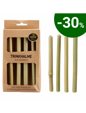 Экологическая альтернатива пластиковым трубочкам. Соломка изготовлена из жесткого бамбука, который можно мыть в посудомоечной машине и использовать повторно. Продукт экологичен и разлагается в природе. Также его можно употреблять для горячих напитков. Поскольку бамбук - это натуральный материал, каждая соломинка имеет уникальную форму.